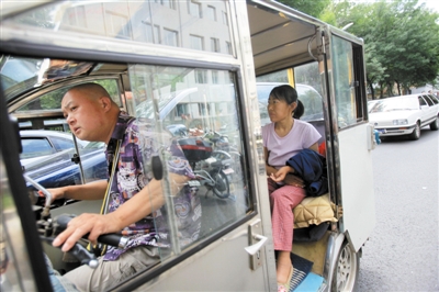 妻子进了透析室,他就去医院附近拉活,运气好的时候,一下午能挣三四十元。“还算幸运,被城管查的两次,拉的都是我媳妇,没罚款。”廖丹说。