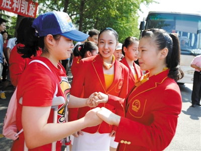 新京报讯 体操女队的伦敦奥运会阵容并不出人意料,眭禄、姚金男、邓琳琳、黄秋爽4人牢牢占据主力位置,“高低杠公主”何可欣成为第五人选,奥运会冠军江钰源沦为替补。昨日出征前,女队在天坛公寓门口集合,体操中心主任罗超毅和女队主帅陆善真做了最后的出征讲话。