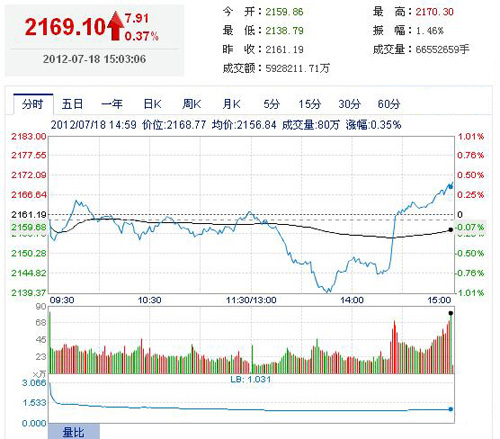 和讯股票消息 今日的股指出现了暴跌暴涨,大幅震荡的走势,午后在地产快速下挫的拖累下,两市急速下跌,沪指创新低2138.79点,离2132今年的前期低点只有6点的距离,但随后,中国石化,银行等权重股发力,股指尾盘急速拉升,迅速翻红,收复了午后的跌幅,重新回到下跌前的平台。