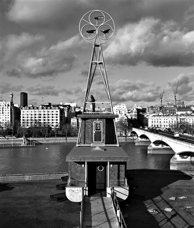 2012伦敦奥运年,一艘轮船搁浅在泰晤士河南岸伊丽莎白女王音乐厅的屋顶,鸟瞰泰晤士河,将大本钟、伦敦眼(摩天轮)和圣保罗大教堂尽收眼底。