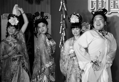 射击队春晚,易思玲(左一)自导自演《唐伯虎点秋香》。 图/中体在线