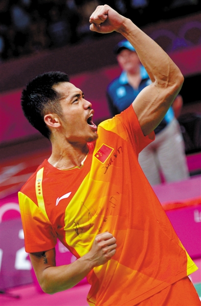 林丹2比1险胜李宗伟,成为奥运史上首位卫冕成功的羽球男单冠军。新华社发