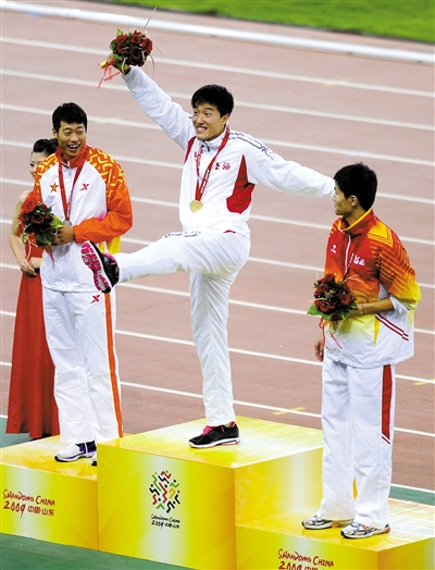 ⑤2009年,在全运会颁奖仪式上刘翔夸张庆祝。
