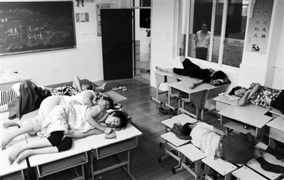 7日晚,在浙江省三门市一处台风安置点内休息的群众。