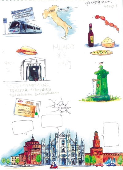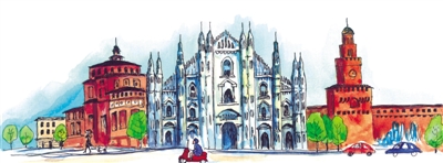 米兰阳光明媚,节奏舒缓闲适。人们的一天仿佛就是遛狗、喝咖啡、聊天、看报纸,几对情侣在林阴道旁边的长椅上拥抱亲吻。中午,餐馆和酒吧里飘出了黄油和鲜蘑菇的味道,成群的鸽子落在周围,品尝着刚刚落下的面包屑,街心水龙头不断地涌出清泉。