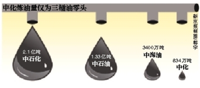 目前中化集团的原油产量与三大石油公司也相去甚远。据2011年年报数据披露,2011年中石油、中石化的原油产量分别是8.86亿桶和3.21亿桶,中海油的油气净产量为3.31亿桶。