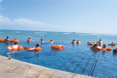 酒店的室外游泳池与大海连在一起