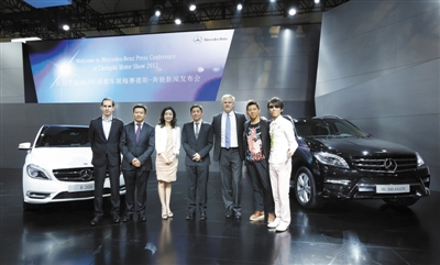 梅赛德斯-奔驰携旗下梅赛德斯-奔驰、AMG、smart三大品牌,亮相第十五届成都国际汽车博览会。全新B级豪华运动旅行车、奔驰SUV家族的最新成员全新ML 300 4MATIC,以及搭载全新BlueDIRECT缸内直喷V6汽油发动机的R 350 BlueEFFICIENCY大型豪华旅行车在成都车展期间上市。共计32款车型在1800平米的展台上展示出奔驰在中国豪车市场最丰富强大的产品线。