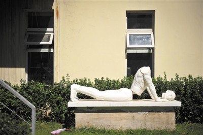 草场地艺术区大视觉工作室门口的艺术雕塑。