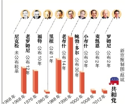 在公布税单的年限上,竞选连任的现任总统和挑战者有所不同。现任总统和副总统至少公布4年纳税申报单,而挑战者公布的税单年限不会低于此年限,甚至超过4年。1980年之后的历次美国总统大选中,只有1980年参选的里根虽公布了1年税单,但仍顺利当选,麦凯恩2008年公布两年税单但未能当选。