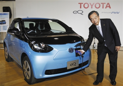 丰田展示其纯电动车eQ,图中人物为丰田汽车副社长内山田竹志。