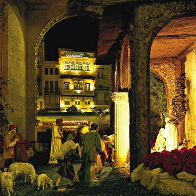圣诞市场在每年12月份的玛利亚广场上举办,这是一个怀旧的地方,空气中飘浮着姜饼、热红酒和烤栗子的味道。最为吸引人的就是圣诞市场上那棵巨大的“圣诞树”。那是一棵有不小年头的大树,浑身挂满了亮晶晶的小灯,暖暖的光亮似乎要通到天边去。