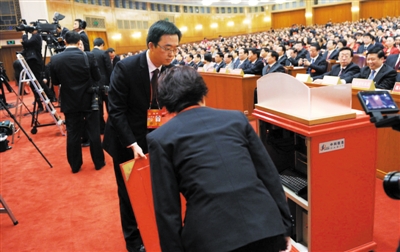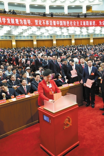 11月14日,中国共产党第十八次全国代表大会闭幕会在北京人民大会堂举行。代表们排队投票选举中央委员会委员、候补委员和中央纪律检查委员会委员。