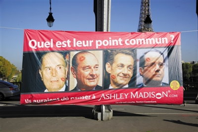 日前,一家专门提供外遇机会的婚外情网站在打入法国市场时,用了四位法国总统的头像做“代言”。这家婚外情网站宣传称:“人生苦短,来点外遇吧!”
