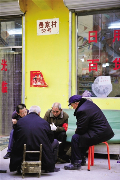 费家村街头闲坐的村民。