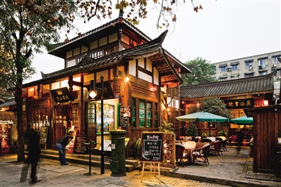 见山书局 明朝大学士桂萼在江西创办了“见山书院”,这里的宽窄巷子也有一座,并附带着藏古纳今的“见山书局”,似乎依然存有理学穷尽的古时性情。(图3)