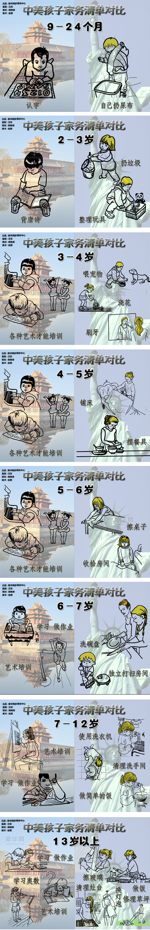原标题:中美孩子家务清单对比