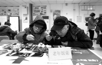 空巢老人在两家高校食堂就餐,是亚运村街道老年餐桌的补充形式。