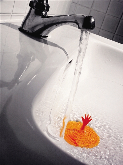 在“救命!排水塞”的帮助下,浴室塞子变成了一个危险的回转大漩涡。我们只能看见一只绝望的手了——那个悲惨的人喊出最后一声“救命”后淹没在你的下水道里。