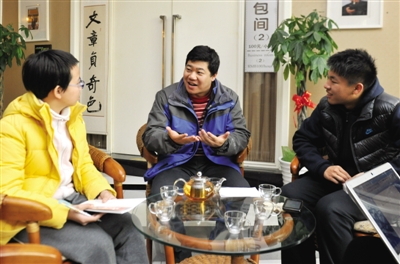 两名对生物感兴趣的学生在和付新华(中)就萤火虫的问题进行交流。