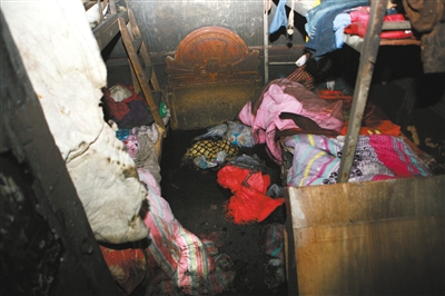 事故现场衣服棉被散落一地。火灾造成7人丧生,其中6名儿童,1名成人,并有1名儿童受伤。王中举 摄