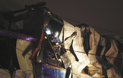 昨日下午,消防员在起火楼房内搜救。新京报记者 浦峰 摄