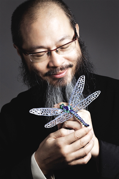 生长于东方,他也惯常在设计中用上佛、禅等许多中国元素,并通过具象来表现。蝉、蜻蜓、鱼、蝴蝶都是他的挚爱,经常出现在作品中。而这些具象的物体,Wallace Chan都会用不同的色彩和精致的做工让它们显得栩栩如生。