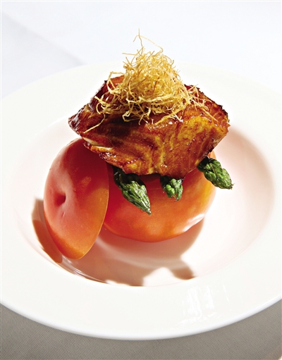 一枝梅花别具中国菜韵味(天伦王朝酒店)。