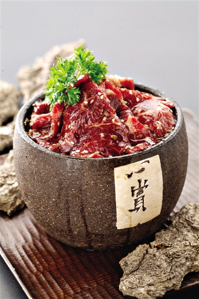 干杯罐腌牛小排,把特制酱汁、日式酱油、清酒、蔬果汁等十几种调料与牛肉放到瓦罐中腌制,看着简单,其实很用心。