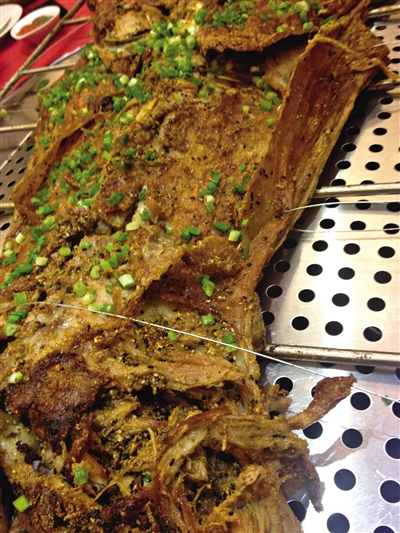 饭总是抢着吃才香,但囫囵吞枣往往如同猪八戒吃人参果,咂摸不出味道,这羊肉酥嫩,可以细品。烤羊的小伙子来自山东,据说烤羊的秘法来自马步芳。马步芳曾是西北军阀,他的厨子叫马广源,“文革”时从西北流落到山东,隐姓埋名,死到小伙子的村子。他却留下来一本菜谱,小伙子拿着菜谱跑遍全国羊庄,在实践中摸索经验,做出如此之美味。听上去像是讲故事,但是羊好吃。
