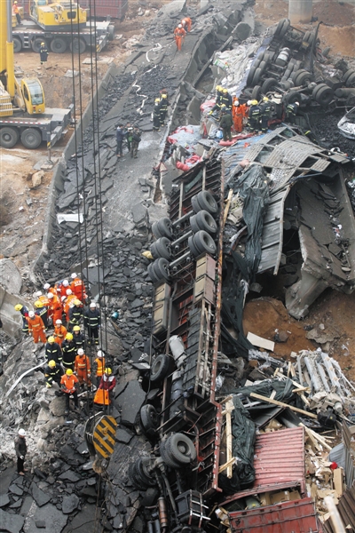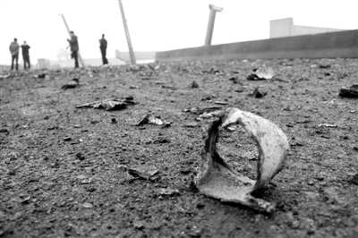 连霍塌桥现场,满地的炮仗碎片。