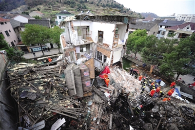 2月3日,消防官兵在事故现场搜救。3日11时20分许,慈溪市浒山街道施山社区雅群面店发生一起疑似锅炉爆炸事故,三间三层楼房部分倒塌。事故导致5人死亡,6人受伤。目前,事故原因调查和善后工作正在进一步进行中。新华社发