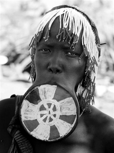 当地女孩长到十五六岁时,她们的下唇就要被割开,塞入较小的盘子,随着年龄增长、割口慢慢撑大,放的盘子也越来越大。为保持美观,许多女性不得不磕掉下牙。