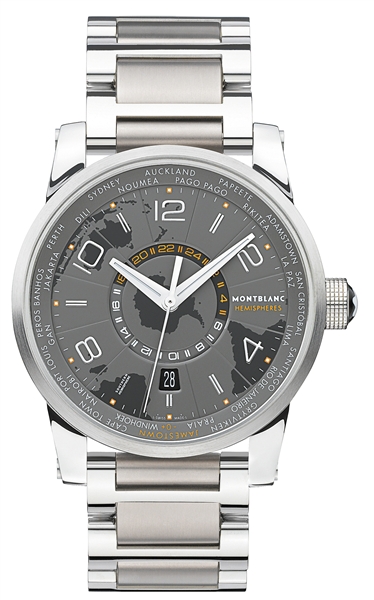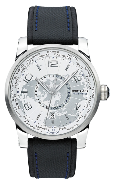 有南北半球两个版本,北半球款式为银灰色盘面,表背的世界城市名称只有位于北半球的城市,南半球款盘面为炭灰色,表背只会看到赤道以南的城市。表盘中央有24小时环,分别与刻有城市名字的外圈朝着反方向运转。相比其他两地时腕表,这只表的盘面设计非常简洁,没有过于复杂的小盘和指针,是一只非常大方的商务用表。并且操作简单,不需要计算时区相差数量,只要将时间对准表圈上的城市名称即可。