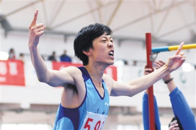 昨日,全国室内田径锦标赛,山东小将张国伟以2米32的成绩打破名将朱建华(小图)保持了27年的跳高室内全国纪录。图/Osports