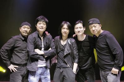 左起:贝司手王文杰、吉他手李彤、新主唱张淇、键盘手惠鹏、鼓手赵明义。