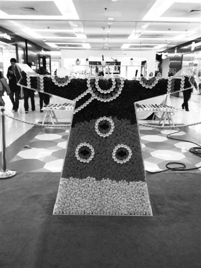 近日,BHG Mall北京华联上地购物中心携手可口可乐公司,邀请澳大利亚知名艺术家德妮丝,由上地周边顾客共同参与,用30000个可口可乐瓶盖装饰而成一件公共艺术展品。这件展品灵感源于中国古代帝王黄袍,它将古典与现代,商业与艺术结合,并提倡顾客将废弃物作为艺术的原材料。它可作为长期地面空间艺术装置存在,永久保存在这里。(右图)