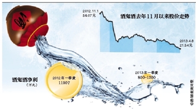 去年第四季度,酒鬼酒深陷塑化剂丑闻。去年11月底,50度酒鬼酒被爆出塑化剂超标247%,随后股价大跌,十天后接近腰斩。对于这场重创行业的风波,酒鬼酒在今年2月初公布的2012年年报中表示,整改工作已如期完成,并采取了相关措施保障产品安全。