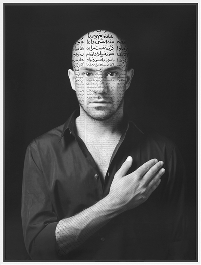 西丽·娜沙特在大画幅的黑白肖像上书写着波斯文,诗歌和历史相互交织。图为2012年作品《RAMIN》。