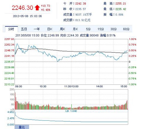 和讯股票消息 今日两市主要以震荡走势为主,文化传媒相关板块和西藏板块走势强劲,沪指尾市小幅收涨,k线上完成五连阳。截至15:00,沪指涨0.48%,报2246.30点,涨10.73点,深成指涨0.58%,报9074.84点,涨51.93点,创业板上涨2.36%,报980.08点,涨22.64点。