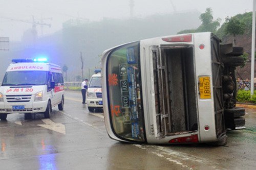 四川泸州客车与小车相撞侧翻 27乘客不同程度受伤