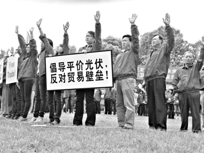 新京报讯 (记者钟晶晶)24日欧盟委员会将就是否对华光伏产品征收高额关税内部投票,这也是目前中欧之间最大的贸易战。昨日英利、天合光能、阿特斯等40多家光伏企业在京召开发布会,反对欧盟贸易保护政策,呼吁政府间展开多层次谈判,将损害降到最低。同时,英利、阿特斯等多家企业员工也在厂区内发起抗议活动。