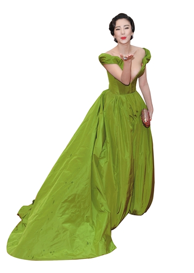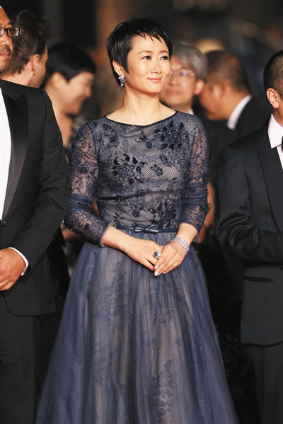 以《过界》女主角身份登场,那种稳重典雅的气质配合什么样的服装都不会差,更是年轻女星们学不来的。