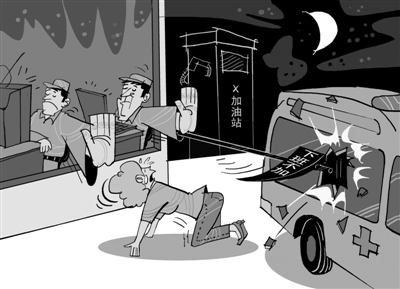 5月24日下午,湖北恩施巴东县塘坊坪村农民陈千均不慎从自家建房工地摔下,造成重伤。就在当地医院紧急抢救后准备将病人送往州中心医院进一步抢救时,当地唯一的一家加油站职工以已下班为由,拒绝为救护车加油,导致救护车被耽误一个多小时,病人最终不治身亡。事后,中石化研究决定,对金果坪加油站站长等两名当事人做出撤职并辞退处理并对家属深表同情。(据《恩施晚报》)漫画/王乃玲