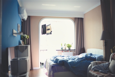 两个人的工作和生活需要经常使用电脑,书房成为他们精心布置的另一个空间。靠窗是二人相邻的书桌,墙上是网上淘来的实木搁板。除了书柜,另一个衣柜也被安置在书房,同样延续了白色色调。墙纸为女主人钟爱的淡绿竖纹,使小空间精致而不压抑。书房的读书角采用布艺沙发和简约地灯,营造出舒适惬意的环境,提供了安静读书的环境。本版采写/新京报记者 冯静