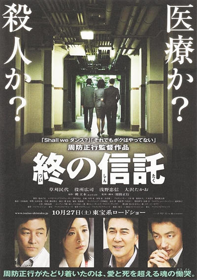 《即使这样也不是我做的》之后,周防正行导演继续借电影讨论争议性社会话题,这回则是关于“尊严死”(中止一切延命治疗手段帮助患者实施死亡)。女医生因帮助病患实施尊严死而面临刑讯的故事,影片同样以冷静和压抑的方式去处理这部影片。