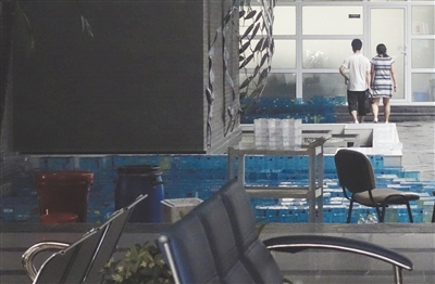 昨日,数十只蓝色的鱼箱摆满了北京大学生命科学大楼一层大厅。当日凌晨,该楼内部发生火灾,数千条斑马鱼死亡。新京报记者 浦峰 摄