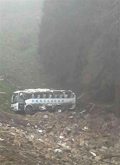 昨日17时10分左右,新疆昌吉市庙儿沟乡一辆大巴发生交通事故,死亡人数已升至13人,23人受伤。发生事故的旅游大巴车从景区返回途中,行驶在盘山公路至达坂时,因雾大导致车辆滑出山道,侧翻入路边山沟。