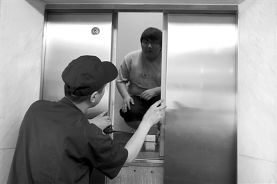 昨日,中关村鼎好大厦,救援人员正在安抚电梯里“被困”的人员。当日,北京市质监局和海淀区质监局在鼎好大厦进行了一场超高层楼宇电梯“困人”的应急演练,要求超高层楼宇电梯今年年内必须实行“一楼宇一预案”,遇到故障必须半个小时内赶到展开救援。