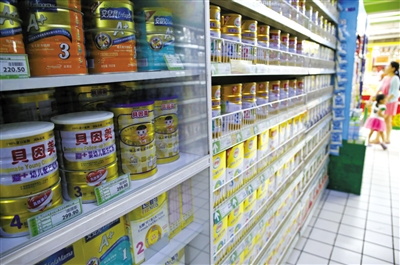 7月3日,乐天玛特国瑞城店中出售的奶粉。近日,三款国产奶粉被曝含有反式脂肪。